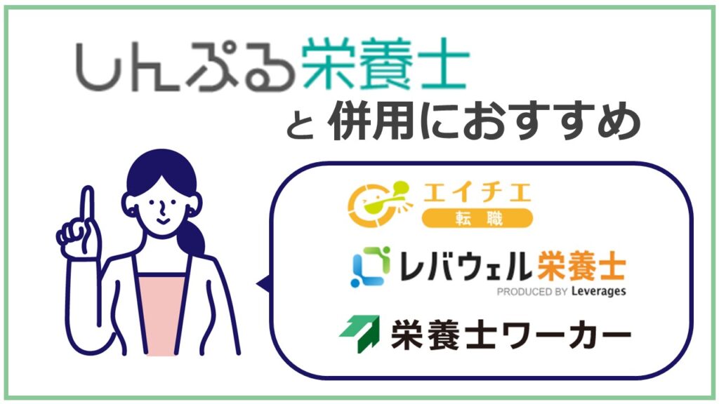 しんぷる栄養士でも十分だとは思いますが、求人情報量や転職ノウハウをカバーするためにも、転職サイトは2つ以上利用がおすすめです。